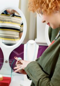 Татьяна Васильева ценит украшения с характером — крупные камни, необычные формы и глубокую символику. На шоу она выбрала несколько колец испанского бренда VIDA MAESTRO с библейскими мотивами и агатовое колье ручной работы.