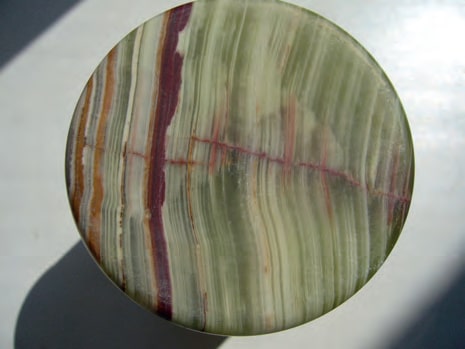 - Рисунок слоев: Если слои на срезе камня идут прямыми, параллельными друг другу линиями — это самый настоящий оникс.